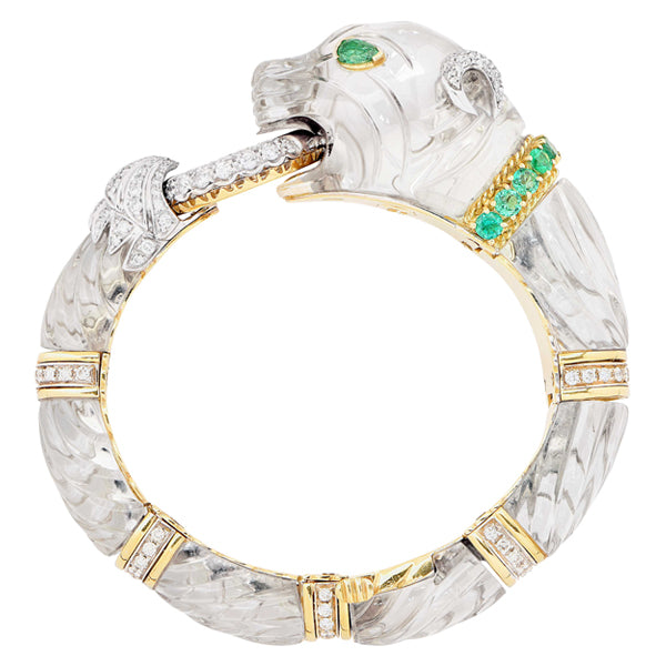 David Webb rock crystal and diamond bombe shape ring featuring 58 bead set round brilliant cut diamonds with an estimated total weight of 2.3 carats. G color, VS clarity. Signed Webb.
