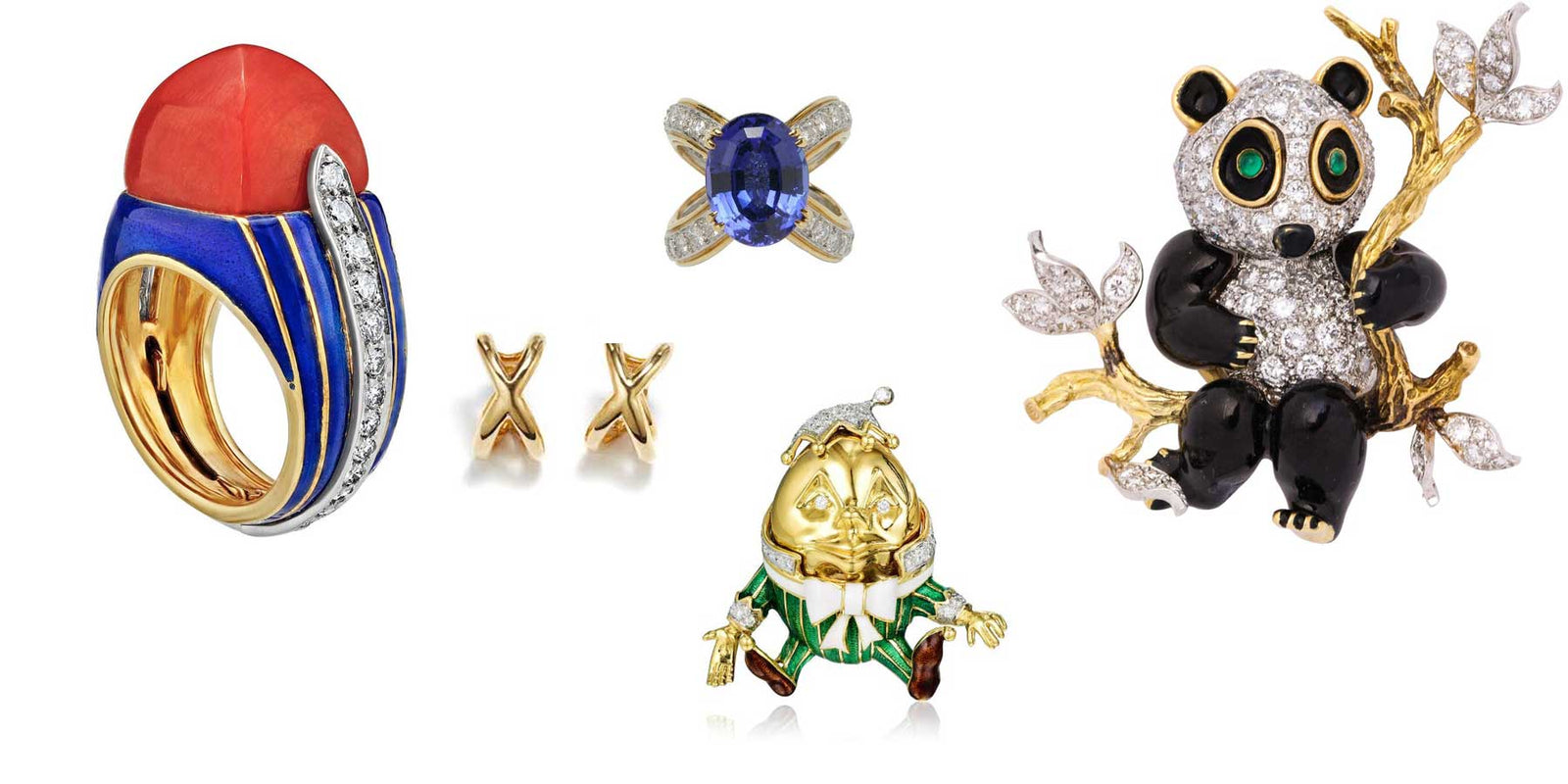 His humorous depictions of animals, sometimes legendary creatures and sometimes characters from children’s much-loved stories such as Alice in Wonderland, remain classics of their time. Along with Jean Schlumberger, he led the way towards a new sophisticated jewelry that other designers were quick to emulate. Following his highly successful years with Tiffany & Co., Donald Claflin became a major designer for Bulgari. Although best known for these jeweled character studies, he was also a skilled designer of more conventional gem-set jewelry and was one of the first in the United States to work with tanzanite, the intense, purplish-blue stone from Tanzania which Tiffany introduced in 1969.